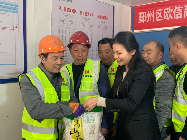 徐雙書記等領(lǐng)導(dǎo)來到項(xiàng)目施工現(xiàn)場(chǎng),為工人們送上保溫杯、保暖手套、大米、口罩、除菌洗手液等生活、防疫物資,將關(guān)懷和溫暖送進(jìn)他們的心里。她叮囑大家冬天室外作業(yè)天氣冷、施工跨度大、危險(xiǎn)源多,一定要遵守施工安全管理規(guī)范,保障人身安全和身體健康,并提前祝福大家新春快樂。她要求項(xiàng)目部在抓好安全生產(chǎn)工作、保證施工生產(chǎn)進(jìn)度的同時(shí),做好防寒保暖工作。