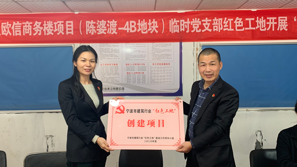 滄海建設(shè)積極響應(yīng)寧波市住建局“六有一好”紅色工地創(chuàng)建活動(dòng),在鄞州區(qū)歐信商務(wù)樓項(xiàng)目(陳婆渡-4B地塊)、鄞州區(qū)寧波市金銀彩繡博物館項(xiàng)目創(chuàng)建臨時(shí)黨支部,打造“工程做到哪里,黨建工作就滲透到哪里”的黨建品牌,切實(shí)發(fā)揮工程項(xiàng)目建設(shè)中黨組織的戰(zhàn)斗堡壘作用和黨員的先鋒模范作用,讓一線項(xiàng)目工地成為“紅色堡壘”,在黨建的引領(lǐng)下,提升工程建設(shè)品質(zhì)。