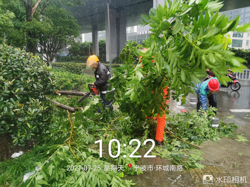 早在一周前,滄海在啟動(dòng)防臺(tái)防汛應(yīng)急指令后,第一時(shí)間調(diào)整工作重點(diǎn),各園林養(yǎng)護(hù)區(qū)域負(fù)責(zé)人展開24小時(shí)養(yǎng)護(hù)區(qū)域巡查,盡最大可能減少事故發(fā)生或進(jìn)行臨時(shí)搶救。園林工程部各位同事更是身先士卒,日以繼夜的奮斗在防臺(tái)抗臺(tái)的第一線。