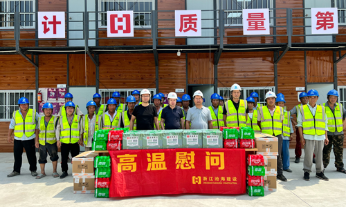 滄海建設(shè)總經(jīng)理蔣立波在每個(gè)走訪的項(xiàng)目中,再三強(qiáng)調(diào)叮囑,務(wù)必要合理安排員工的作息,避免在一天中溫度最高的時(shí)間段進(jìn)行作業(yè),要求各個(gè)項(xiàng)目部備足飲用水、鹽水飲品、防暑藥物和防暑用具等物資,關(guān)注員工生命安全和身體健康,勸阻員工在戶外作業(yè)后急飲冰品等,真正做到“平安建設(shè)”。