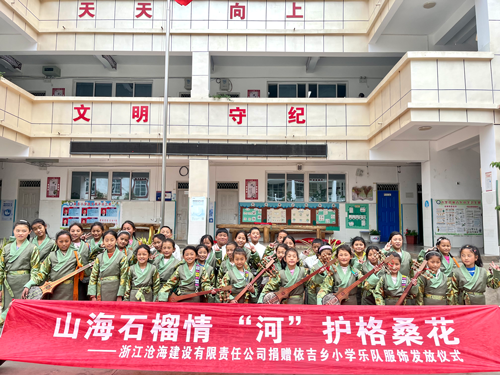 了解到這一情況后,滄海公司主動認(rèn)領(lǐng)了孩子們的“微心愿”,在鄞州區(qū)中河街道及來自木里的掛職干部楊秋的對接下,滄海建設(shè)精心選購了55套民族服飾送往當(dāng)?shù)?,?dāng)孩子們收到這份特殊的禮物時,小小的臉上綻放出了燦爛的笑容。舞臺上,孩子們身穿漂亮的藏裙,彈奏著動聽的“念扎”,用自信而嘹亮的歌聲唱響對藝術(shù)的熱愛和對愛心企業(yè)的感激。