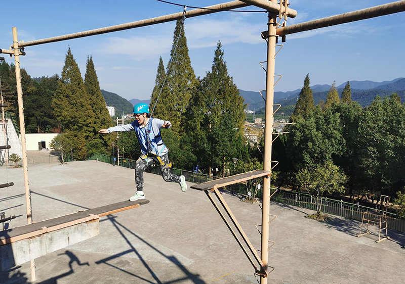但,這是挑戰(zhàn),是滄海隊(duì)員要去跨越的挑戰(zhàn)!站在“橋頭”,腳下是數(shù)米高空,每位隊(duì)員心中都在打鼓,腦中反復(fù)回放教練說(shuō)的方法要領(lǐng),哪些動(dòng)作可以做,哪些動(dòng)作不能做,帶著周圍隊(duì)友的鼓勵(lì),鼓起勇氣跨越斷橋——