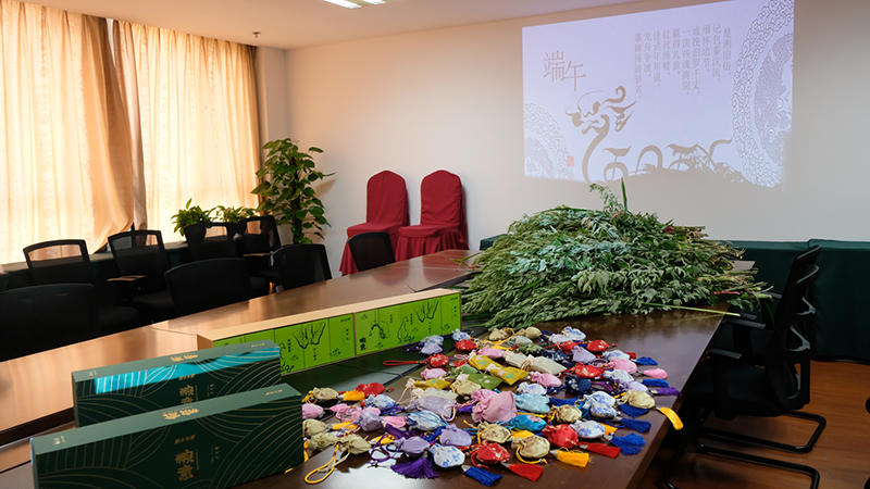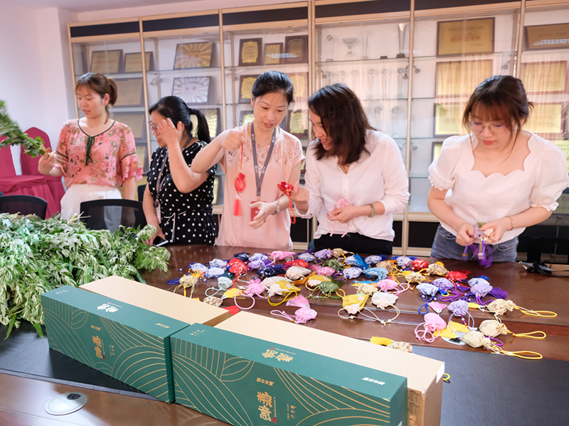 在工會(huì)活動(dòng)室里,擺放著大量的菖蒲、艾葉,各色各樣的粽子和精致的香囊、香料,員工們各個(gè)躍躍欲試、大展身手,制作屬于自己的節(jié)日禮物。
