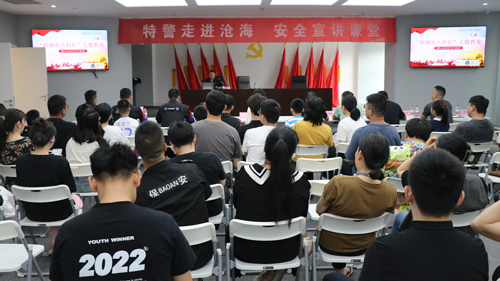 培訓(xùn)中,潘隊(duì)向滄海員工們講述了黃賭徒及酒駕的后果和創(chuàng)建平安家庭、平安工地建設(shè)的重要性,以及安全防護(hù)知識(shí)宣講。